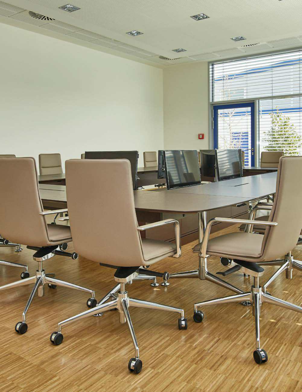 Das Büro ergänzen wir weiter mit ergonomischen und hochwertigen Möbelsystemen für Konferenz- und Schulungsräume inklusive moderner Medientechnik: Mit Tischen, abgestimmt auf Größe, Form, Farbe und den dazu passenden Stühlen/Sesseln, werden Meetings in entspannter Atmosphäre möglich. Besonderes Potenzial steckt in der Einrichtung von Kantinen und Pausenzonen, die durch moderne und bequeme Lounge Möbel zu einer Pause in entspannter Umgebung einladen. Stapelbare Stühle und ten Nutzung von Veranstaltungsräumen.