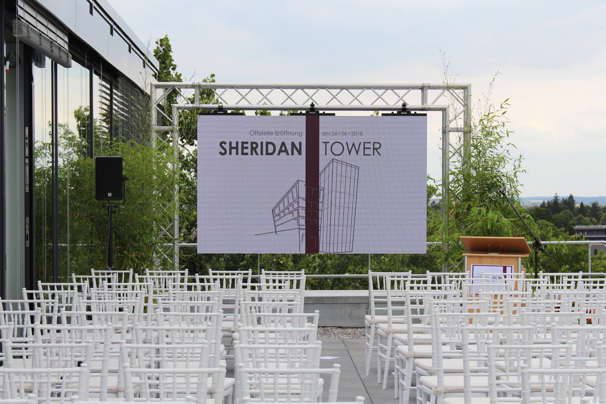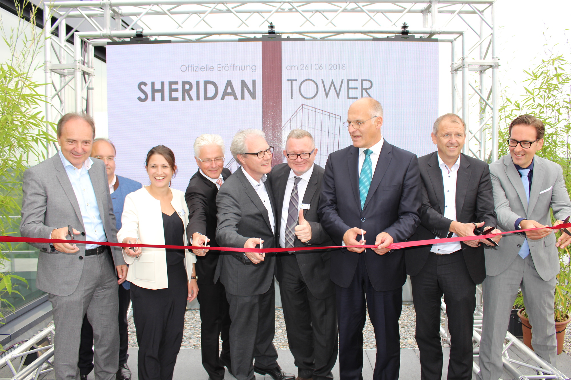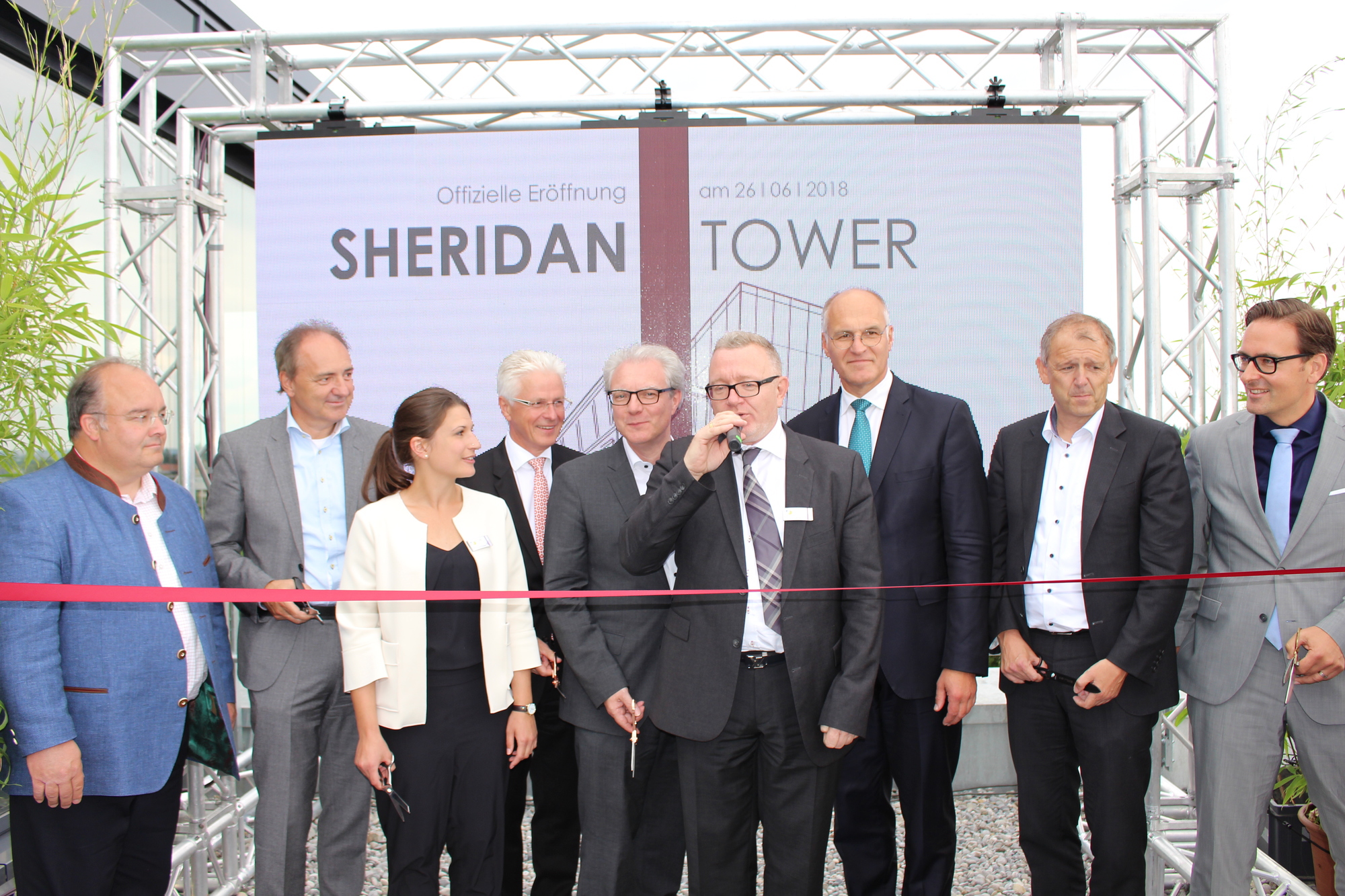 „Mit dem Sheridan Tower wurde ein architektonisches Statement gesetzt. Was vor vier Jahren als Idee begann, ist nun Realität. Wir freuen uns das Gebäude heute offiziell an die Mieter zu übergeben“, begrüßte Stephan Deurer, Bauherr und Geschäftsführer der asset GmbH, die rund 100 Gäste. „Eine Spitzenleistung, die hier vollbracht worden ist. Das Gebäude ist Taktgeber für technologischen Fortschritt und spornt andere an“, betonte Augsburgs Oberbürgermeister Dr. Kurt Gribl in seiner Rede. „Wir Augsburger haben nun ein Wahrzeichen mehr. Der Sheridan Tower ist ein bauliches Highlight und damit zukunftsweisend“, so Gribl.