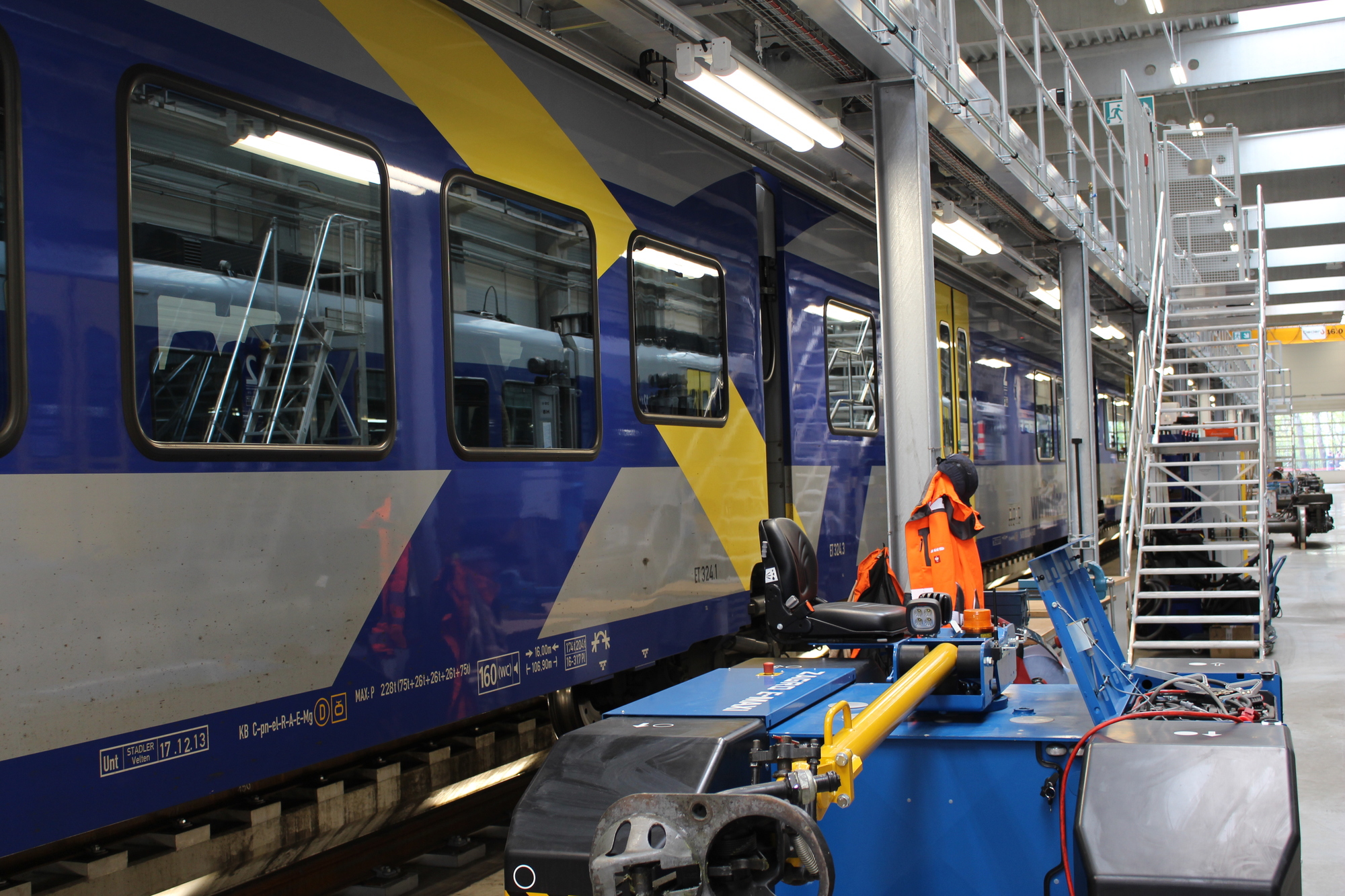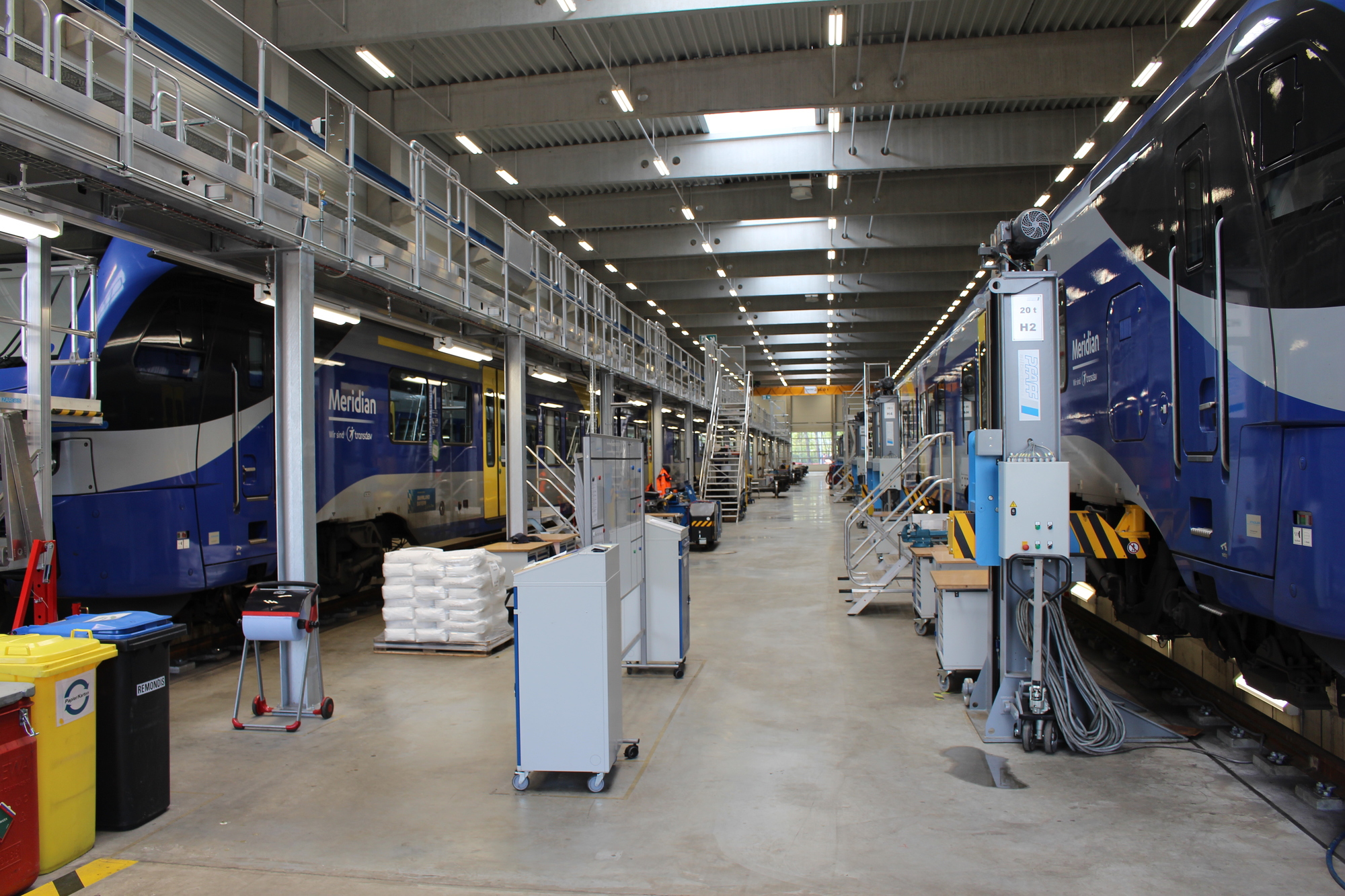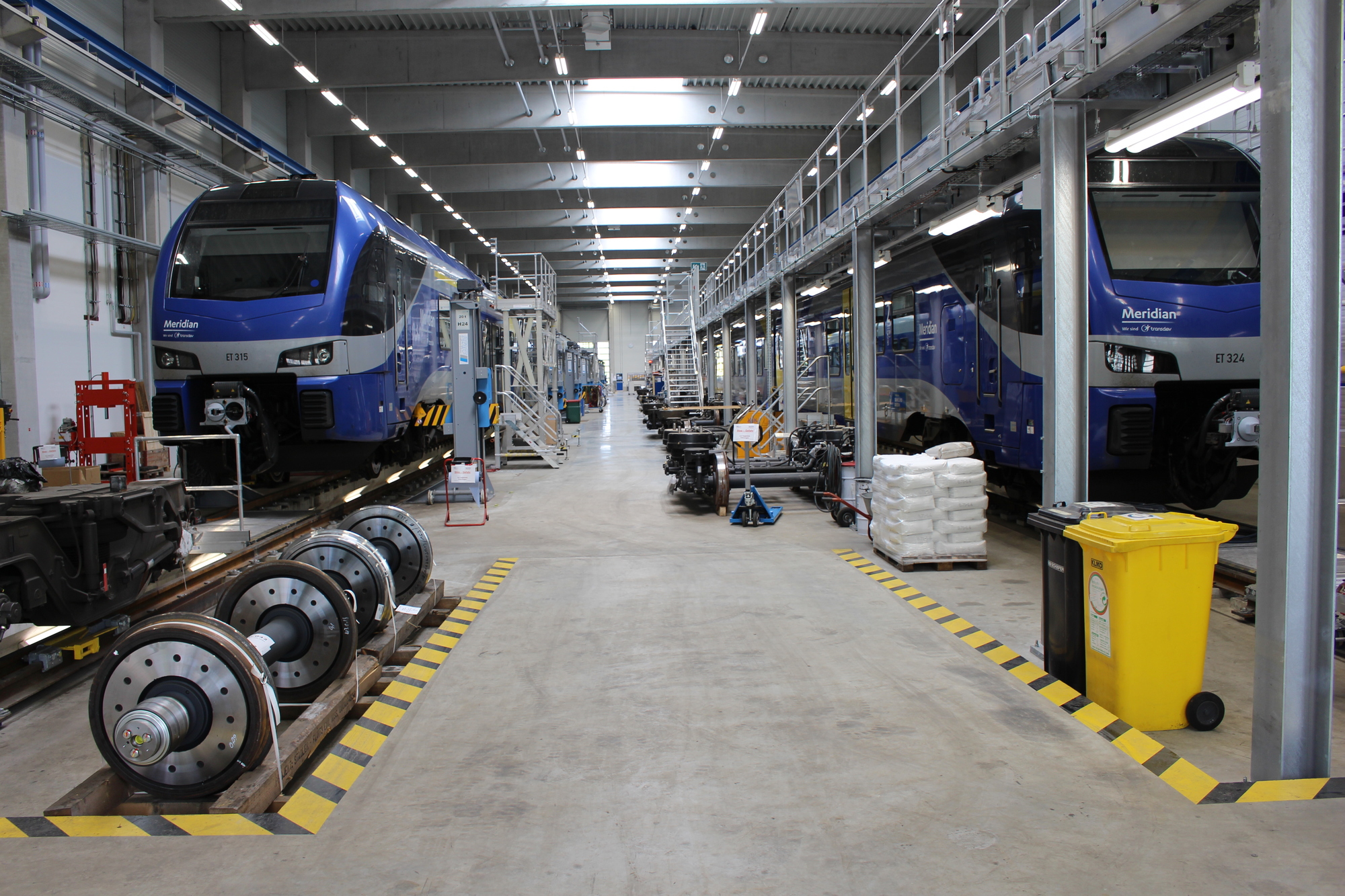 Die neue „Meridian-Halle“ fasst 2.690 Quadratmeter und ist Arbeitsplatz von 21 Mitarbeitern. Sie verfügt über zwei Arbeitsgruben von je 121 Metern. Über einer Grube ist auf 120 Meter Länge eine Dacharbeitsbühne mit motorisch angetriebenen Schubelementen angeordnet. Das zweite Grubengleis ist mit einer Hebebockanlage mit 24 Einzelböcken versehen. Der ganze Fahrzeughallen-Bereich ist mit einem 16 Tonnen Deckenkran überspannt. In der 12 Meter hohen Halle können leichte Instandsetzungen und Wartung sowie Umbauten und Modifikationen an den Zügen vorgenommen werden. Das gesamte Gelände fasst 27.000 Quadratmeter.