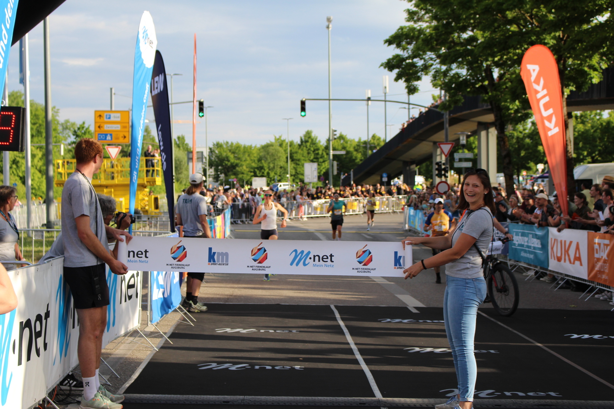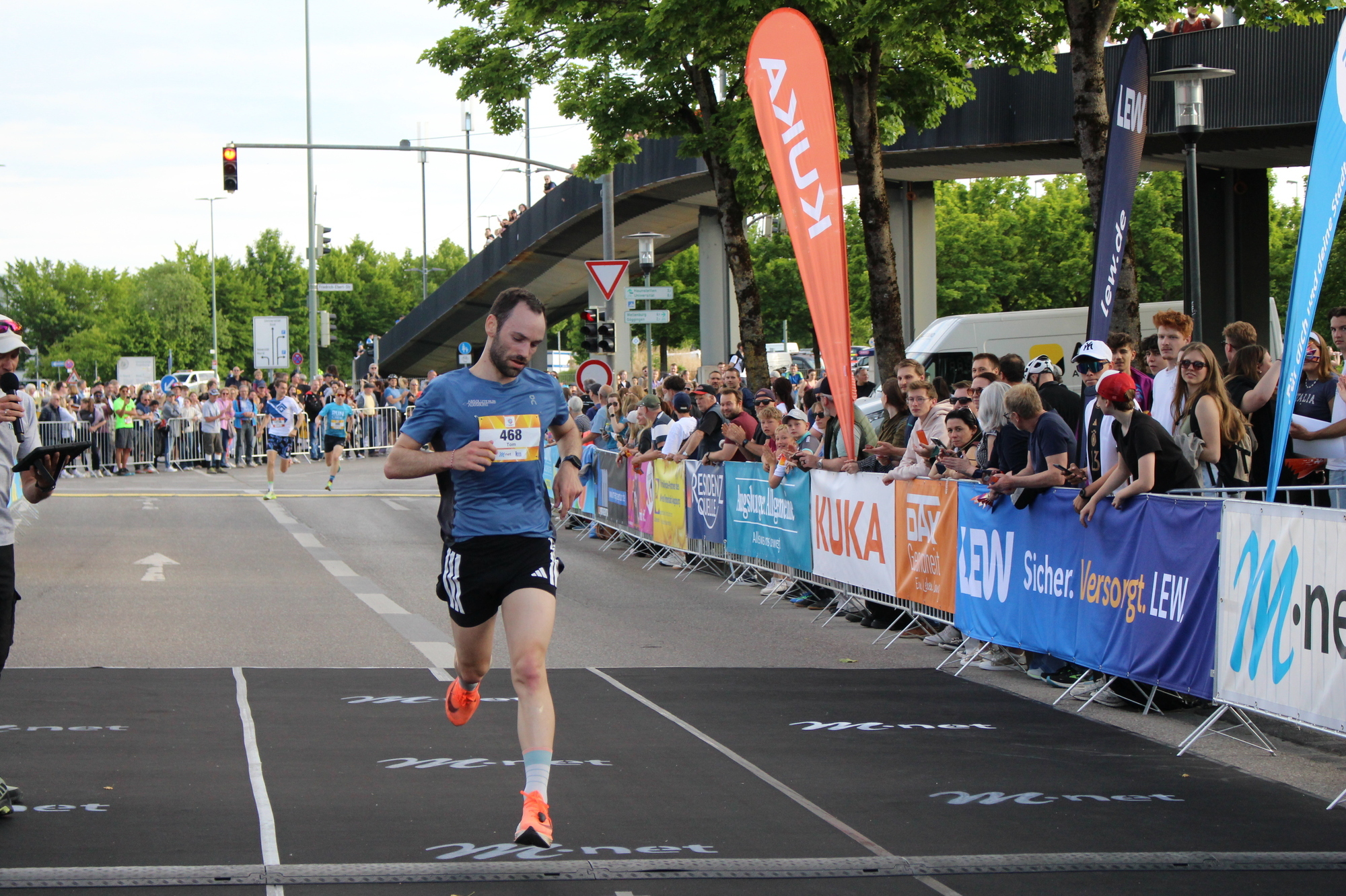 Gewonnen hat wie im vergangenen Jahr Maximilian Berger mit 00:15:20 - und hat damit sein Ergebnis vom M-net Firmenlauf 2024 um 21 Sekunden unterlaufen. Schnellste Frau war in diesem Jahr Magdalena Mayer mit einer Zeit von 00:18:43.