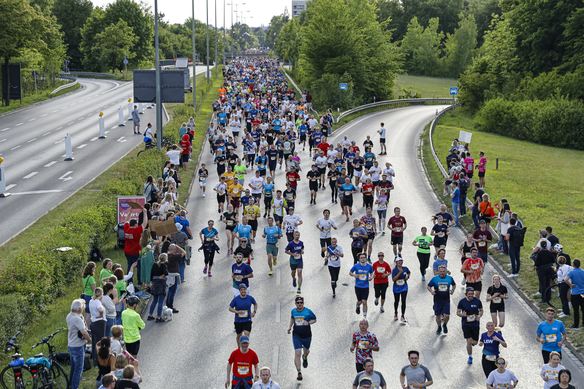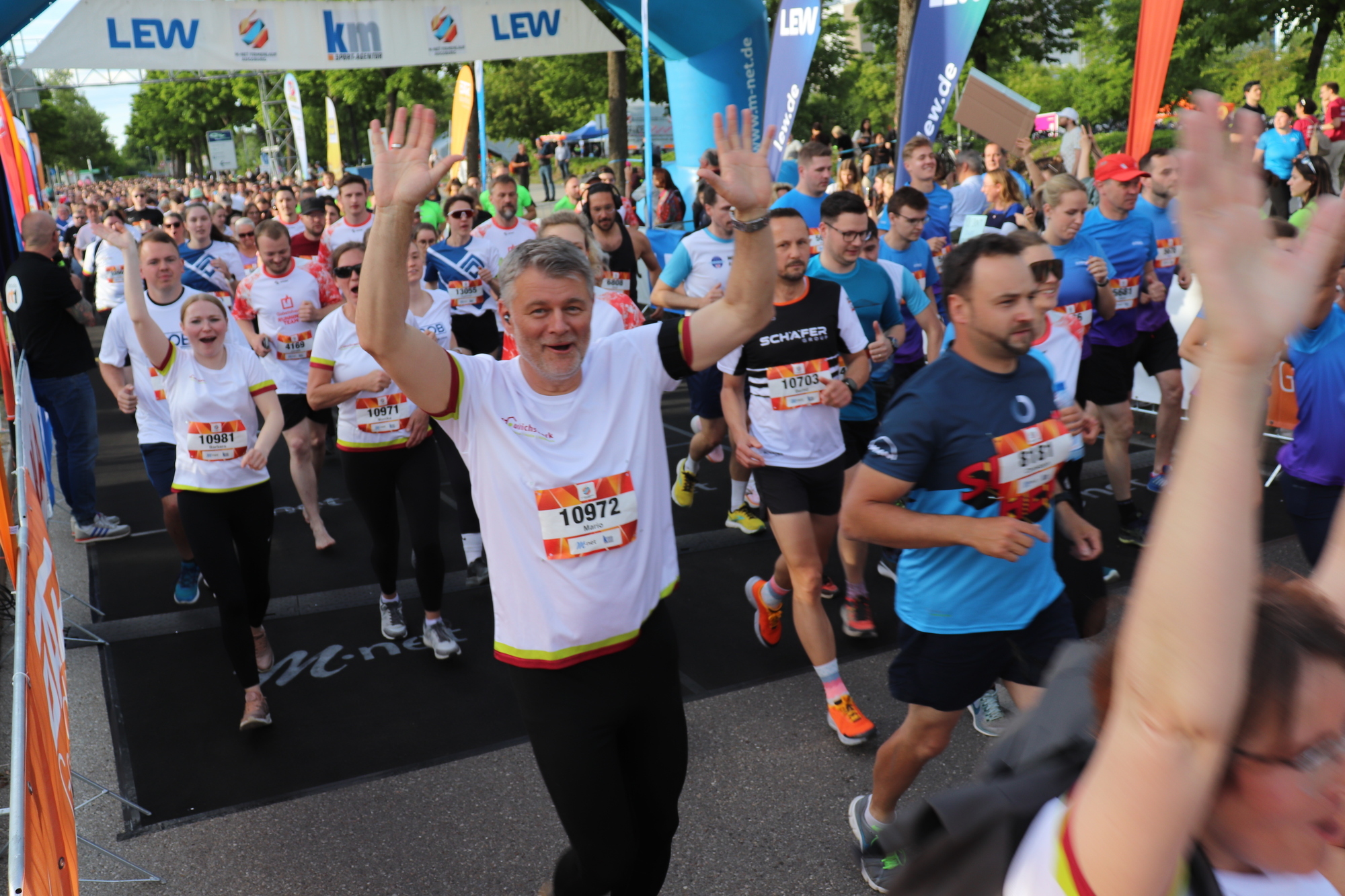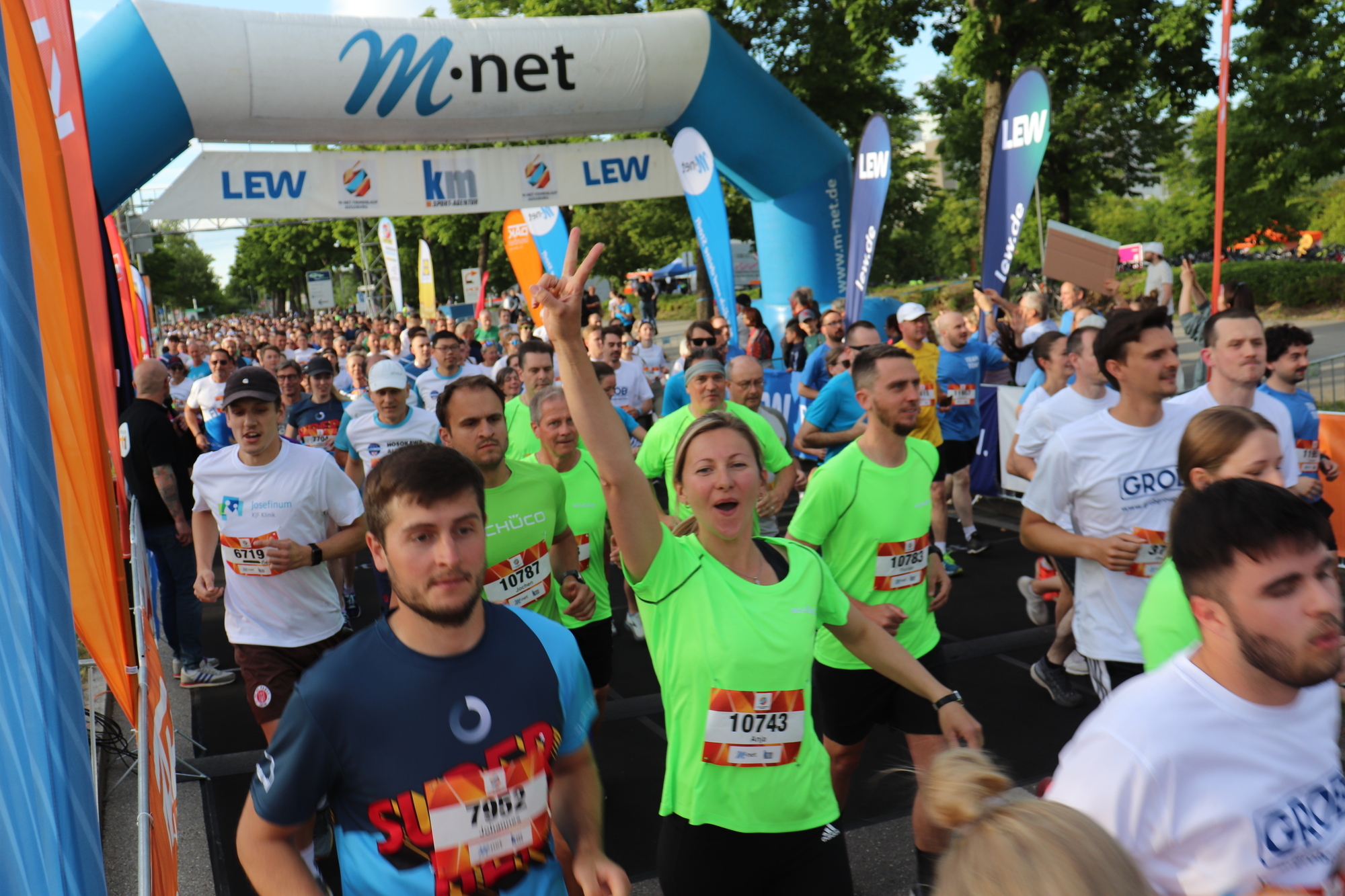 14.000 Läuferinnen und Läufer sind 2025 beim M-net Firmenlauf an den Start gegangen - diesmal bei schönstem Sonnenschein und nicht wie vergangenes Jahr bei Gewitter. Premiere feierte dieses Jahr der zweifache Startschuss: Weil das Interesse an dem Firmenlauf von Jahr zu Jahr wächst, haben die Veranstalter die Startplätze auf 14.000 erhöht - und zwei Startgruppen zu je 7.000 Läuferinnen und Läufer gebildet.