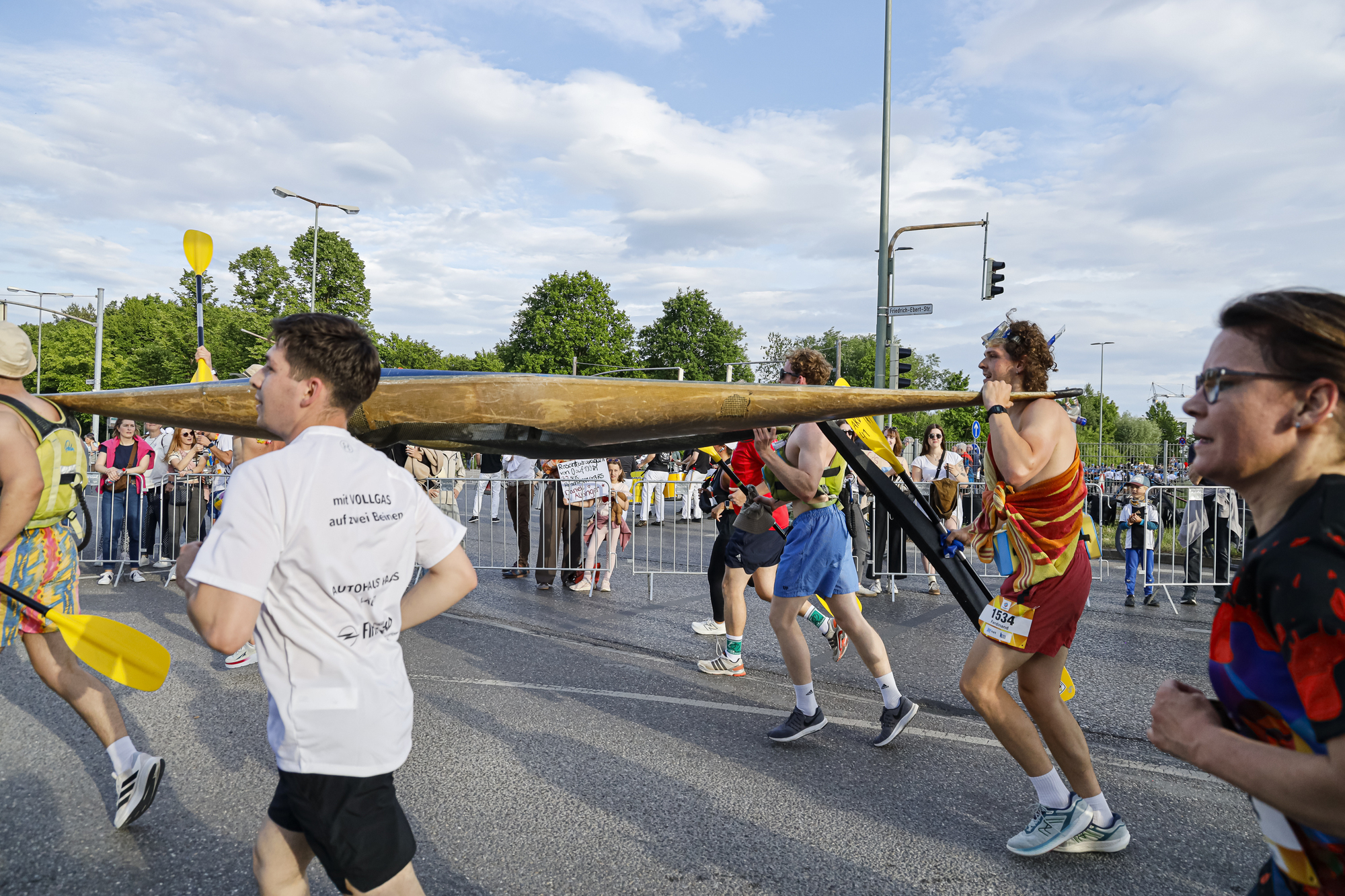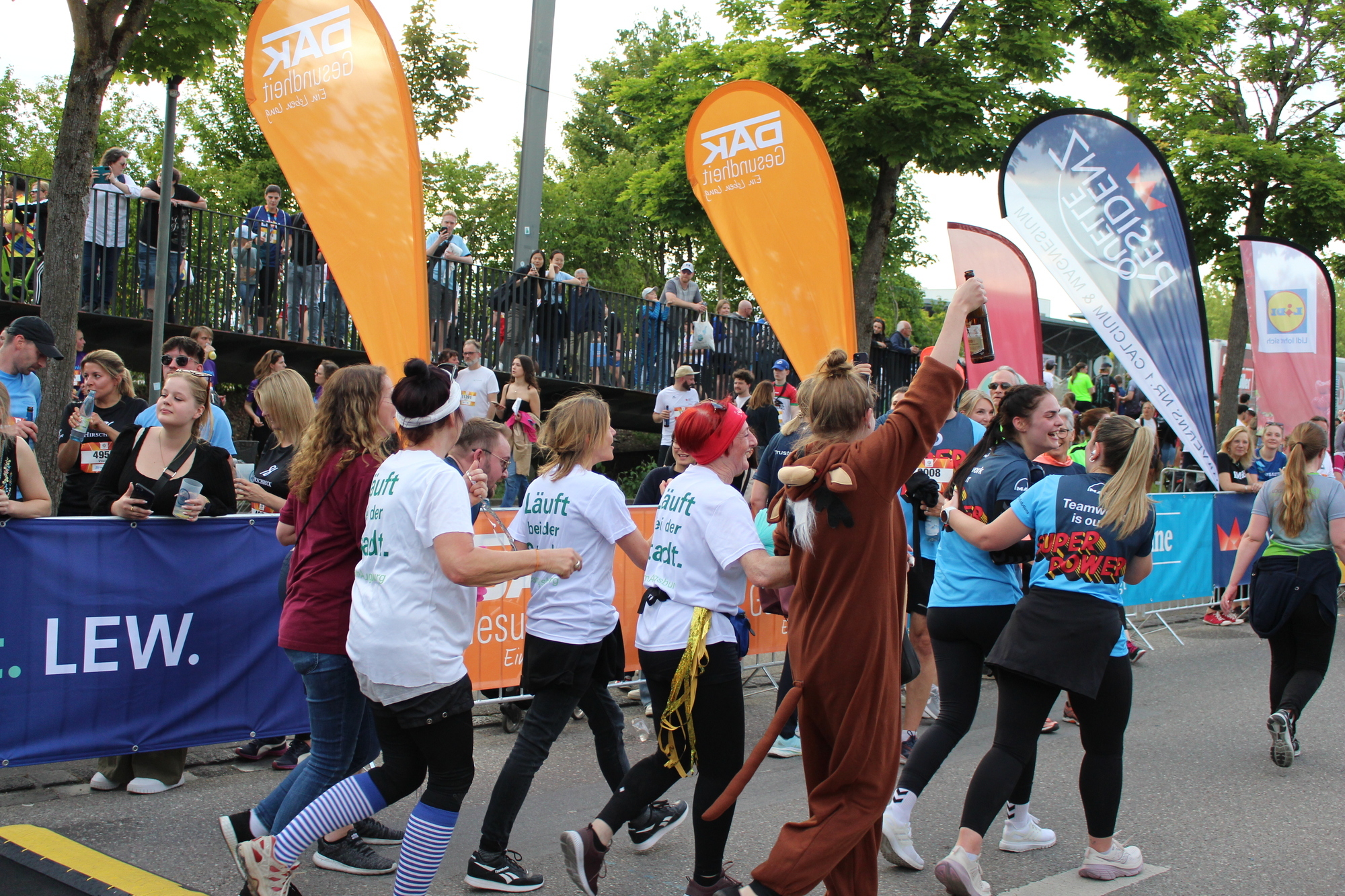 Die Siegerinnen und Sieger wurden bei der anschließenden Open-Air Party mit der Live-Band „SM!LE“ gefeiert. Neben Ehrungen für die schnellsten Teams, Läuferinnen und Läufer wurden auch die originellsten Kostüme und größten Teams ausgezeichnet. Das originellste Kostüm hatte in diesem Jahr das Team der Berufsfachschule für Physiotherapie des IB e.V.. Als Kanuten verkleidet haben die Läufer zwei komplette Kajaks auf der 5,3 Kilometer langen Strecke mitgetragen.