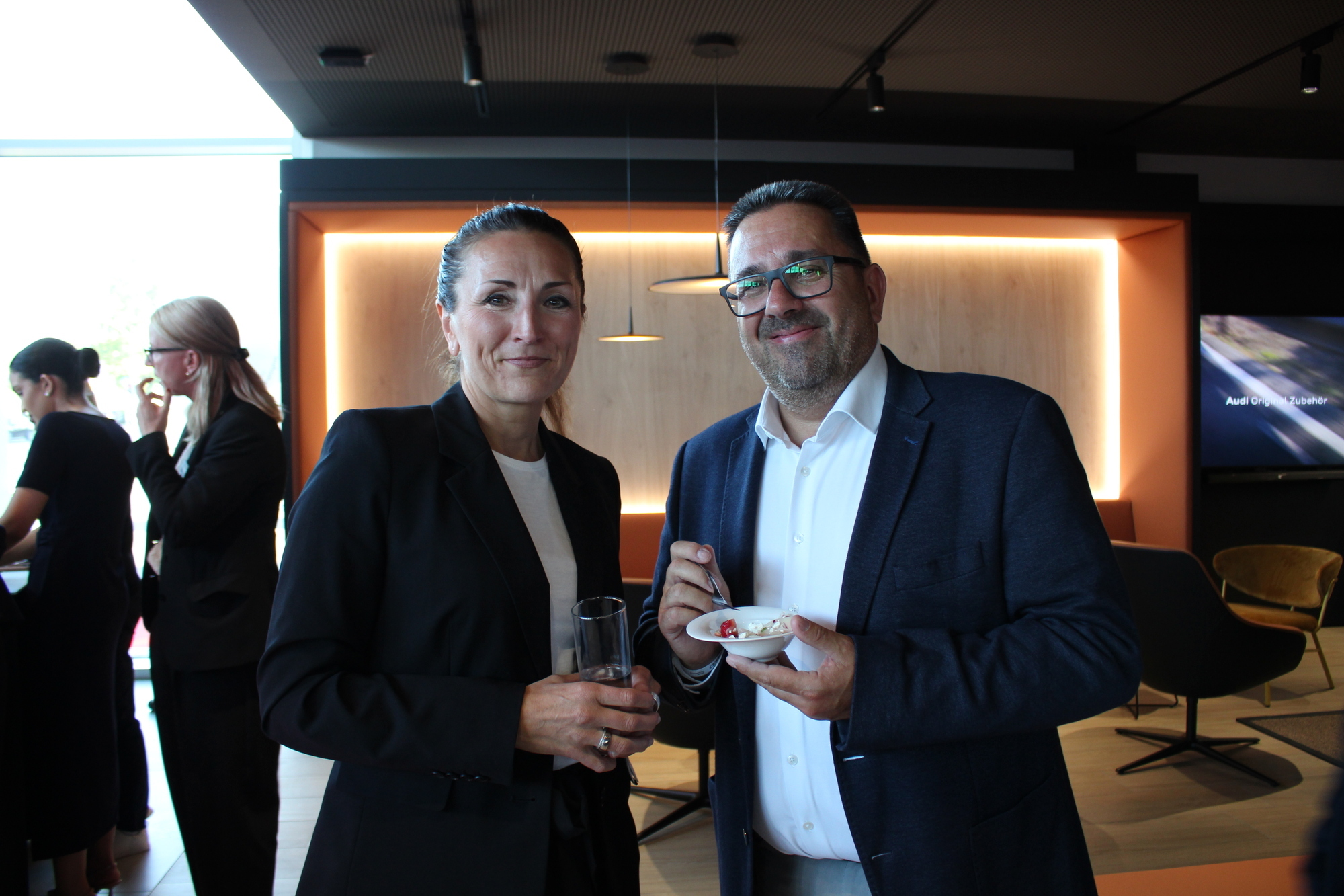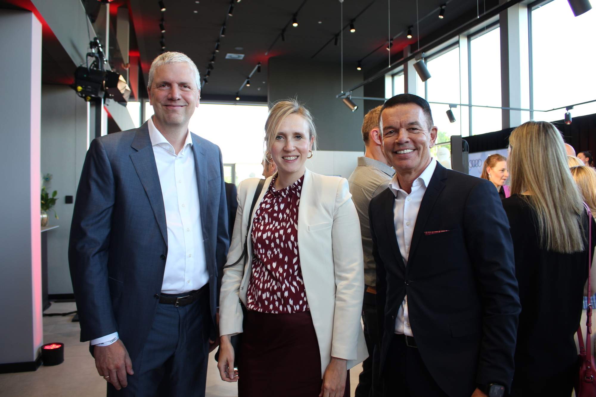 „Wir eröffnen am bekannten Standort einen top modernen Showroom“, sagte Schwaba-Geschäftsführer Michael Agsteiner in seiner Begrüßungsrede. Im neuen Audi Zentrum finden sich auf zwei Ebenen Beratungsinseln, Privatlounges und Highlightflächen. Außerdem hat das Gebäude eine PV-Anlage, einen Batteriespeicher und eine biologische Wasseraufbereitungsanlage. Demnach braucht der Betrieb des Neubaus laut Agsteiner keine fossilen Brennstoffe.