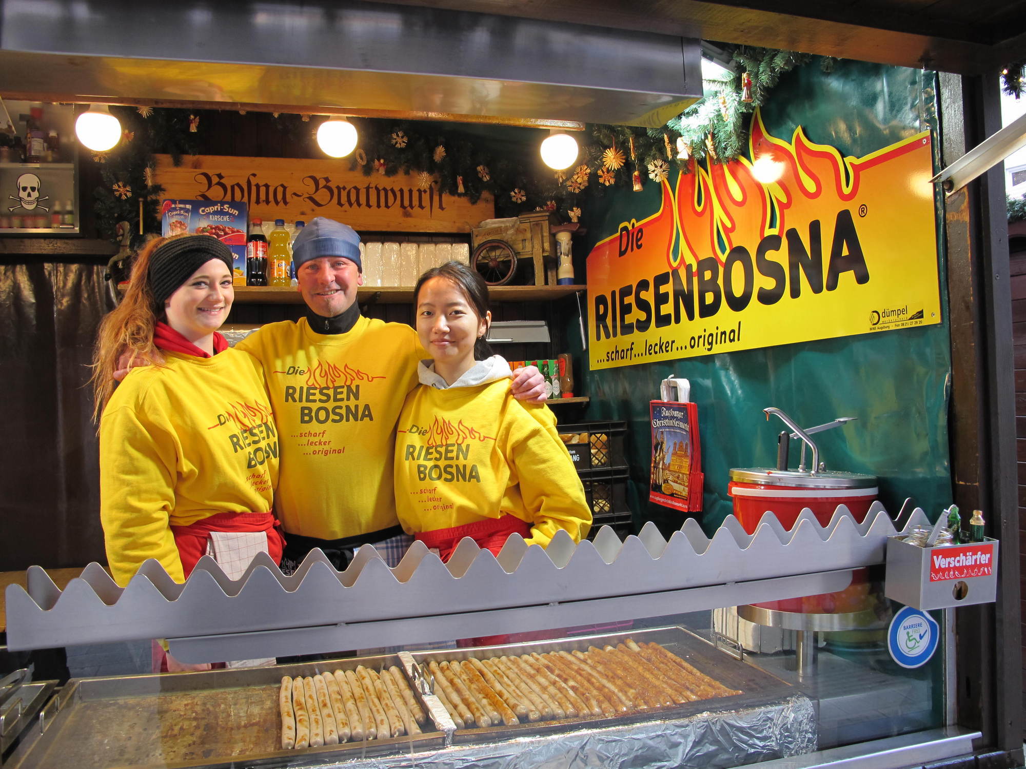„Das bisherige Wetter ist optimal. Bisher hatten wir nur einen Tag Regen“, erklärt Ronald Plötz, Betreiber des Stands „Riesenbosna“. „Was mich und auch die meisten anderen Standbetreiber allerdings nervös macht, ist der Wind. Nicht nur, dass die Kundschaft weniger wird, sondern man muss auch immer ein Auge auf die Schirme und die Dachreklamen haben“, so Plötz.