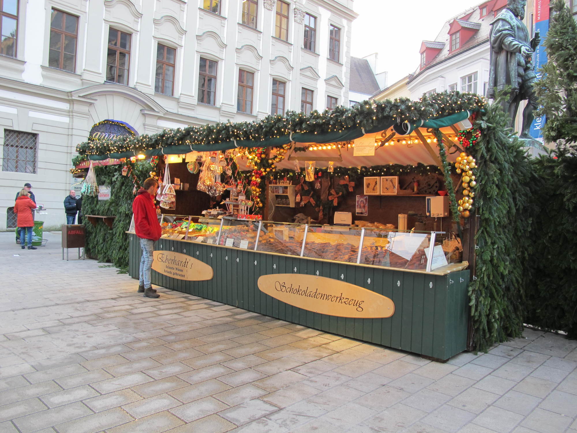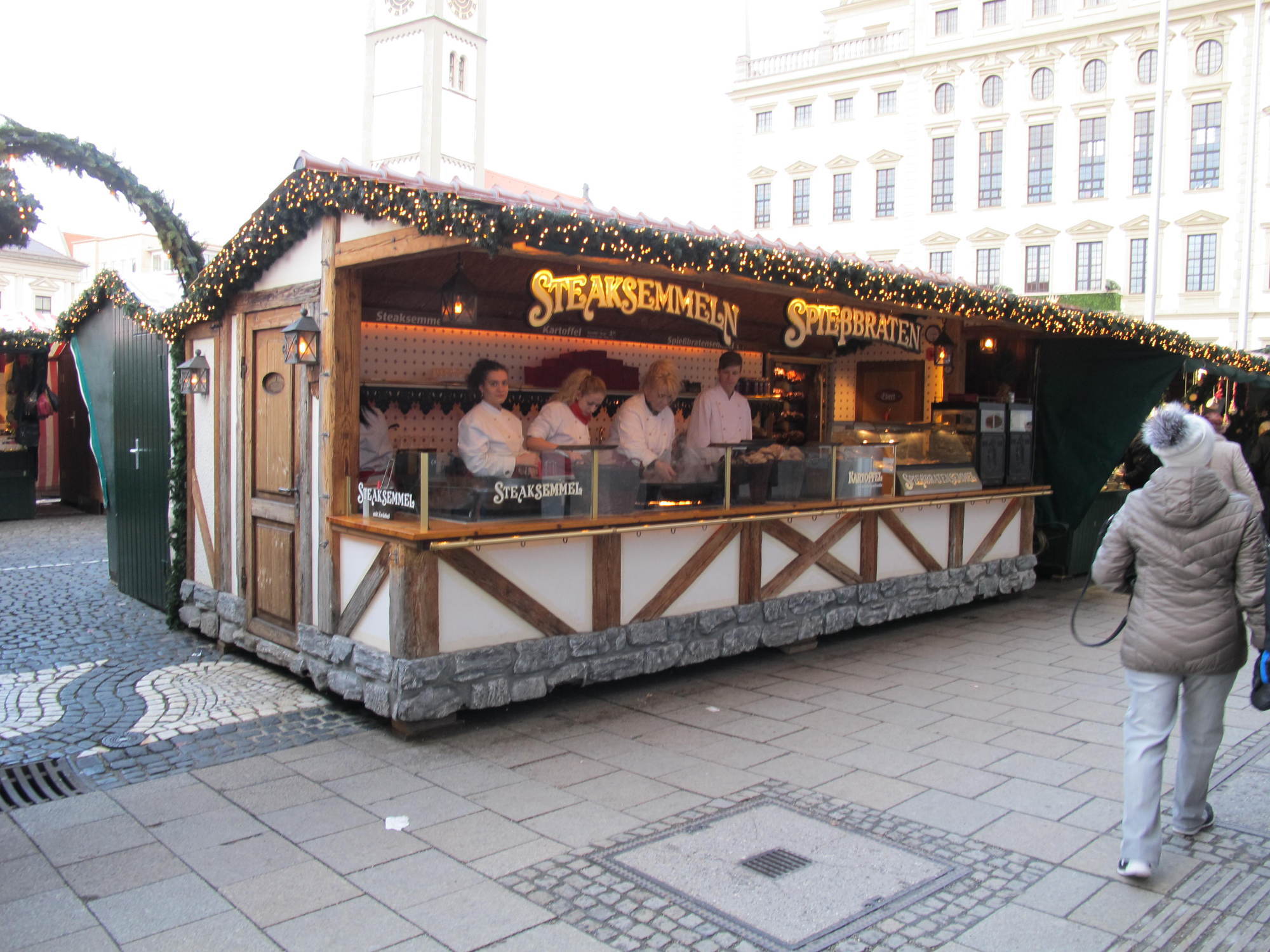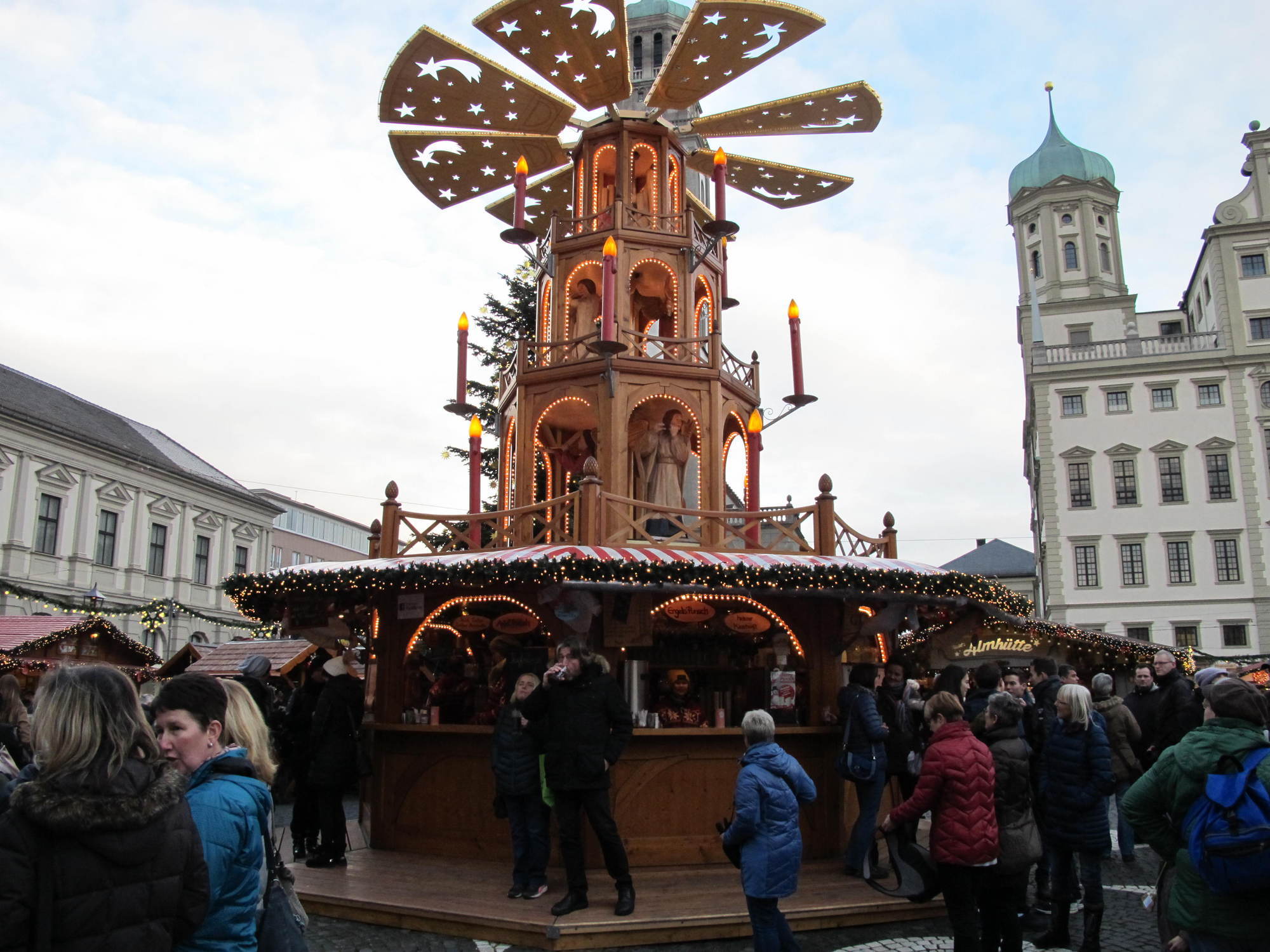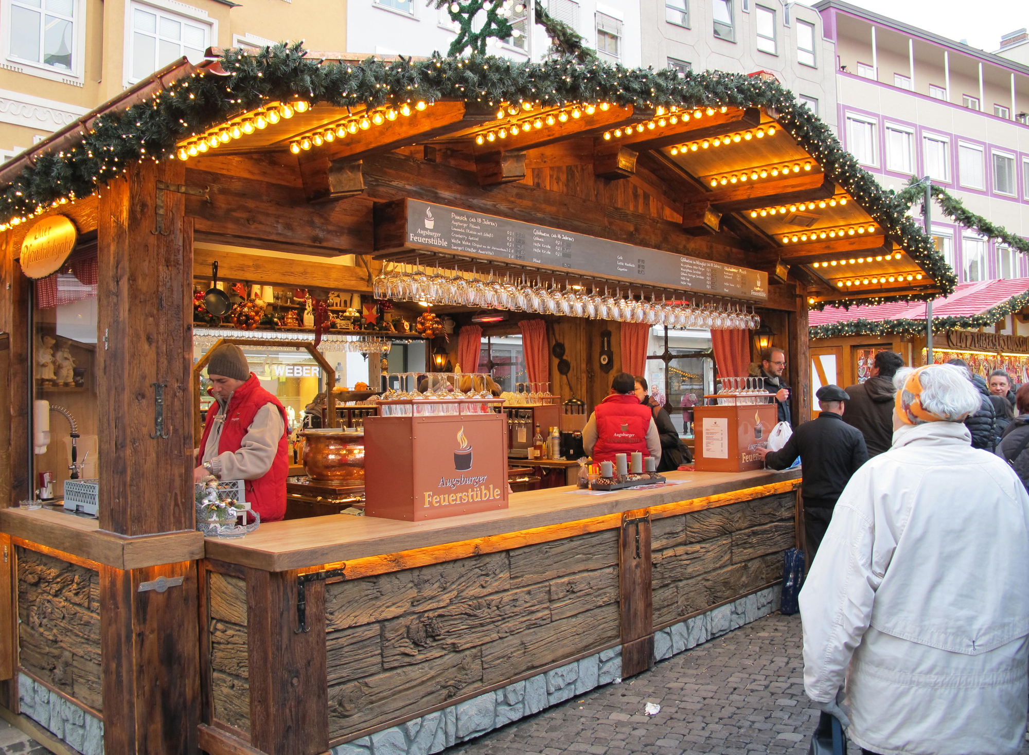 „Mit den diesjährigen Umsätzen bin ich bisher zufrieden. Problematisch ist allerdings der eisige Wind – der ist schlecht für das Geschäft. Wenn dann ein Tag nicht rund läuft, zieht das den gesamten Wochenschnitt herunter“, erklärt Friedrich Müller-Ebert der einen Glühweinstand betreibt. Er selbst ist seit 37 Jahren mit seinem Stand am Augsburger Christkindlesmarkt vertreten, seine Familie sogar schon seit rund 100 Jahren.