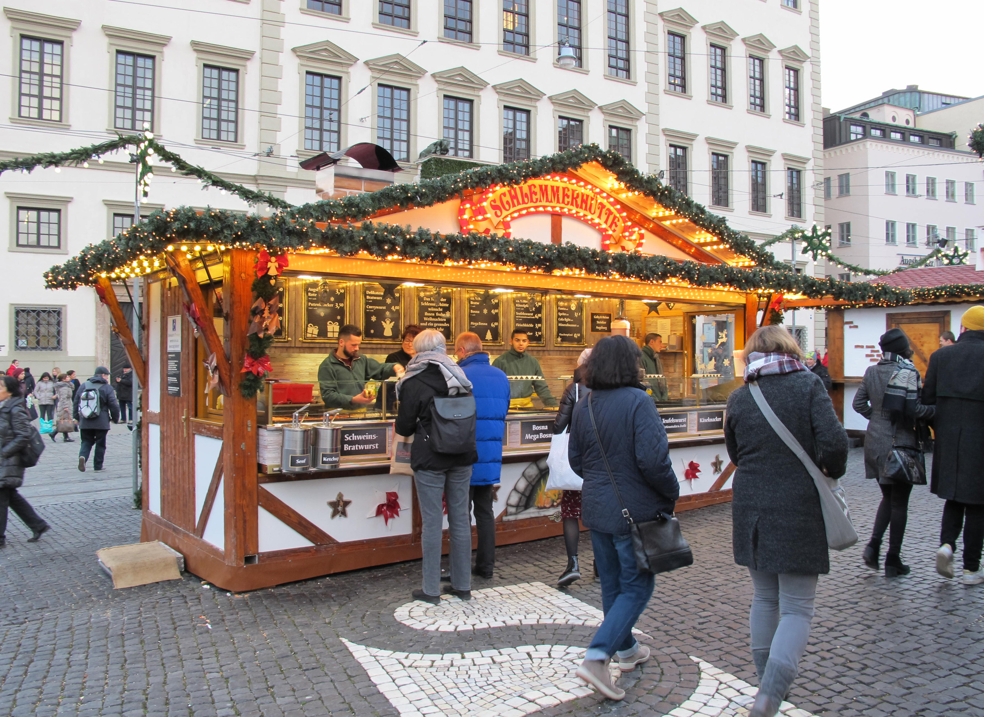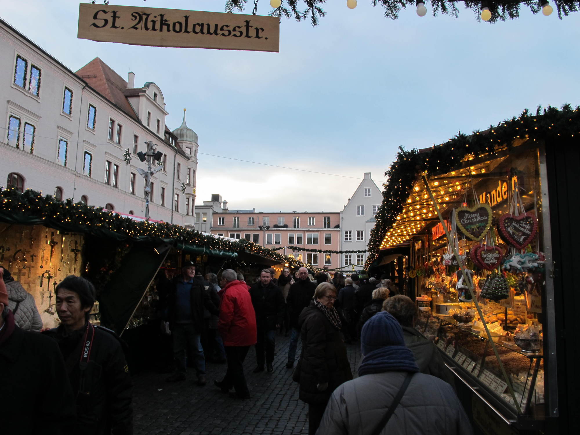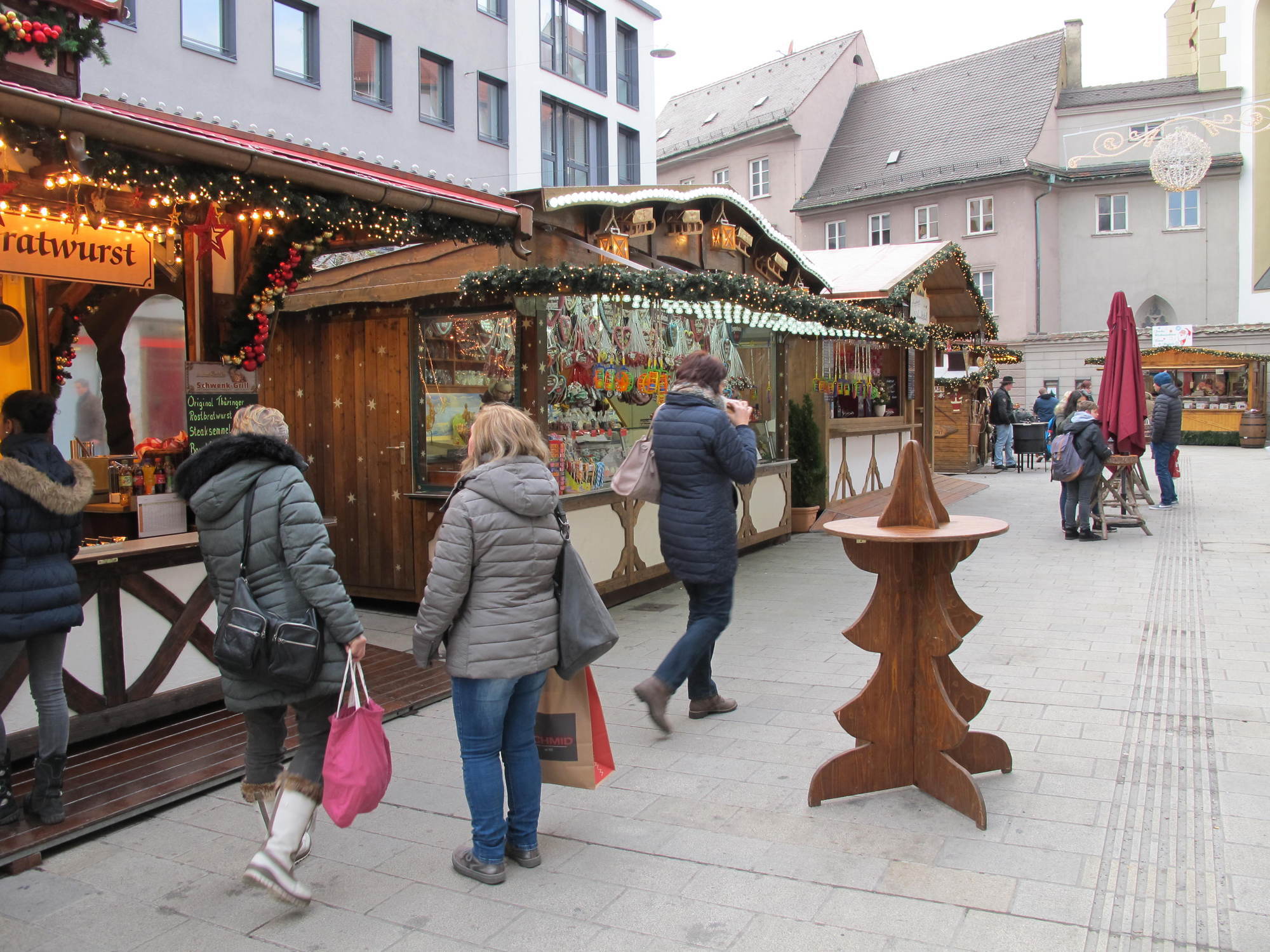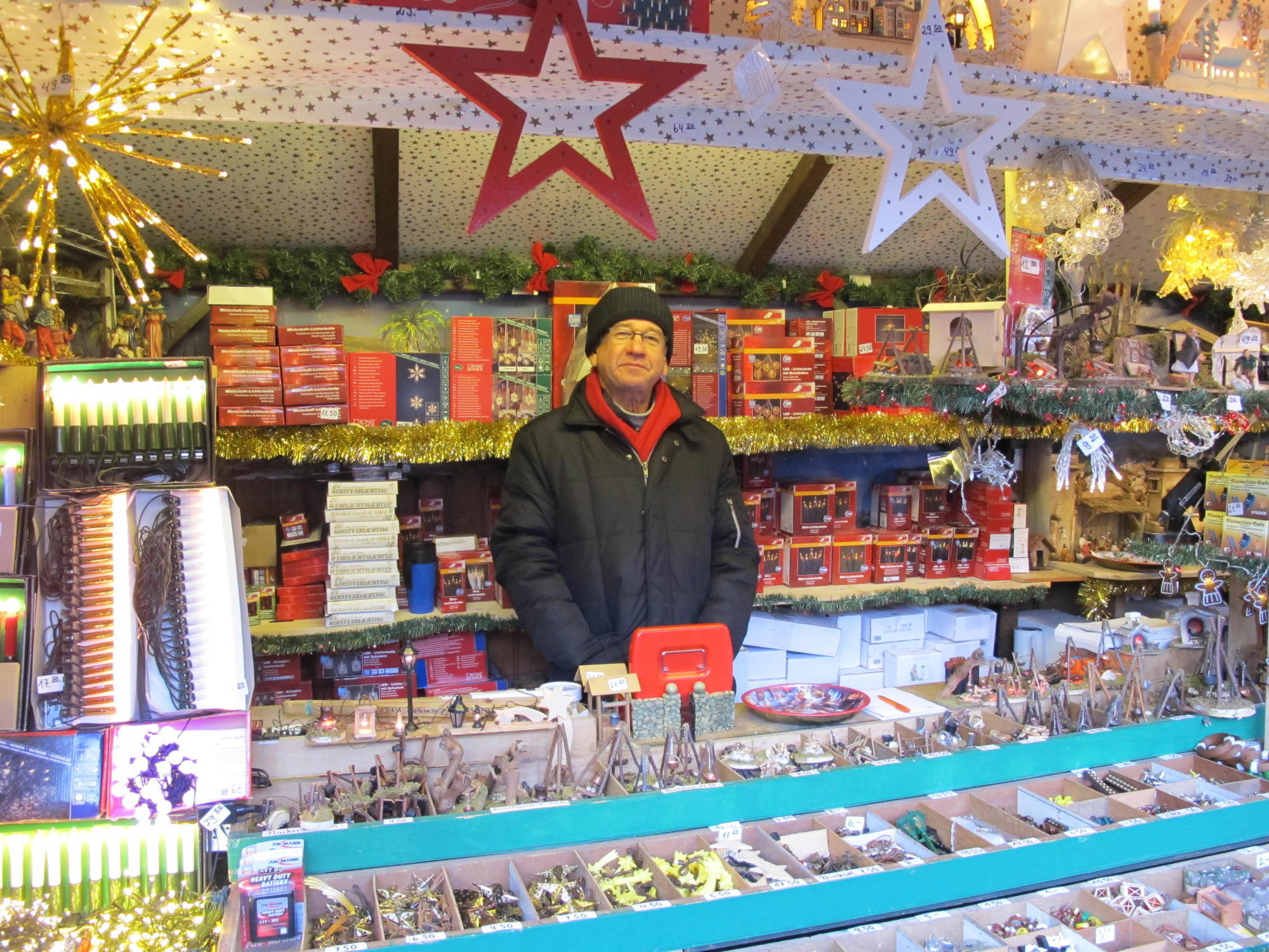 „Mit den diesjährigen Umsätzen bin ich bisher zufrieden. Problematisch ist allerdings der eisige Wind – der ist schlecht für das Geschäft. Wenn dann ein Tag nicht rund läuft, zieht das den gesamten Wochenschnitt herunter“, erklärt Friedrich Müller-Ebert der einen Glühweinstand betreibt. Er selbst ist seit 37 Jahren mit seinem Stand am Augsburger Christkindlesmarkt vertreten, seine Familie sogar schon seit rund 100 Jahren.
