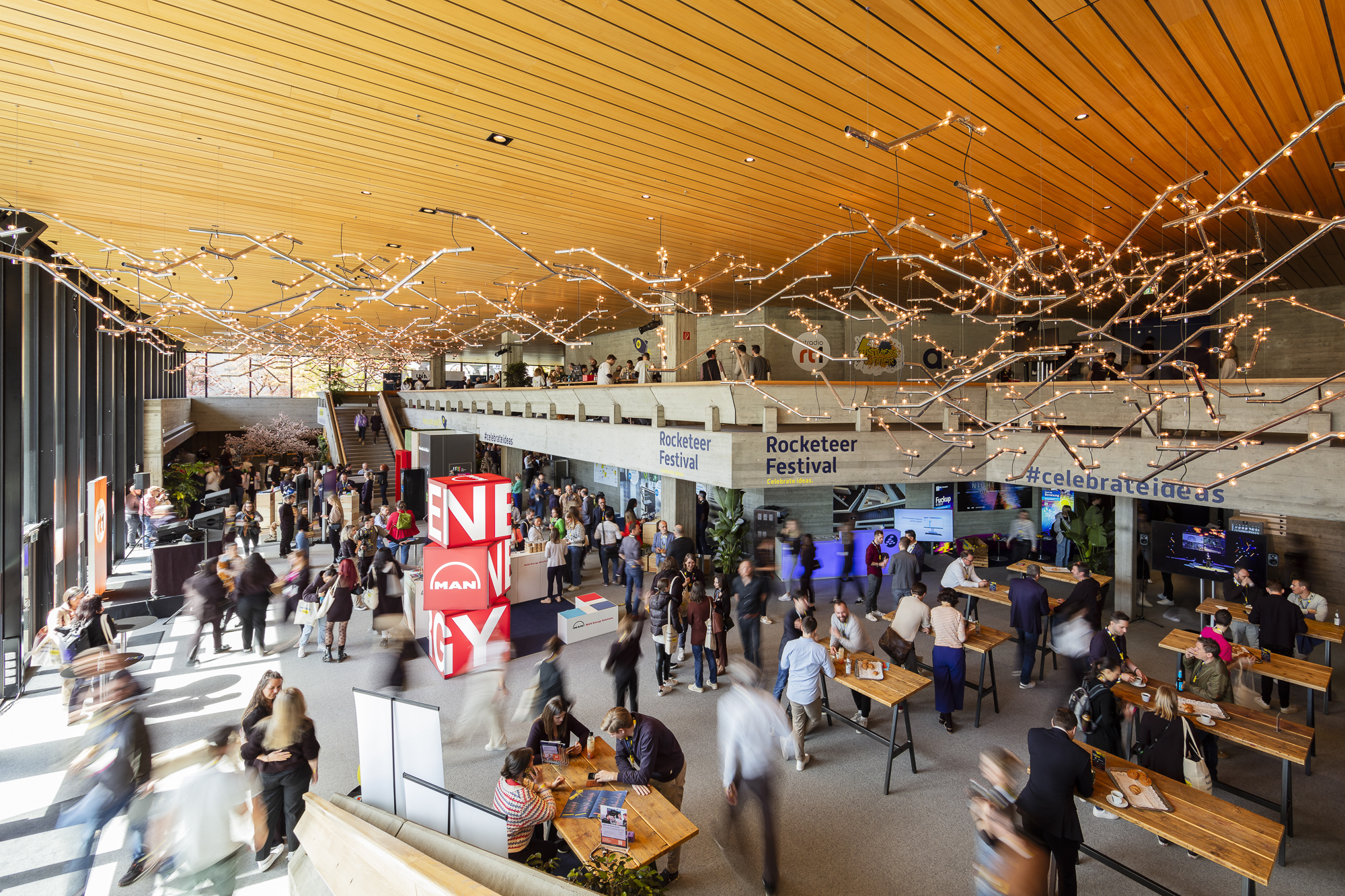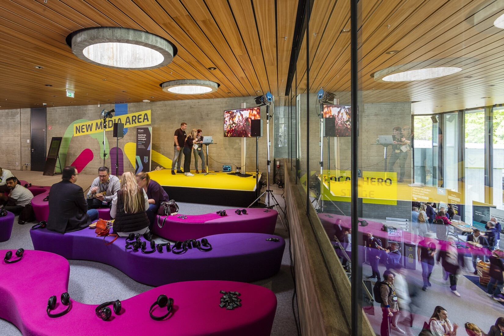 Das 1972 erbaute und 2012 sanierte, denkmalgeschütztes Ensemble wird von einem preisgekrönten Lichtkonzept bewusst in Szene gesetzt, mit zeitgemäßen LEDs und vintage Beleuchtung. Die besondere Wohlfühlkulisse beruht u.a. auf Design Klassiker von Verner Panton.